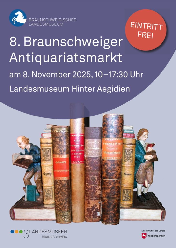 Am 8. November 2025 findet im Dormitorium-Saal des Braunschweigischen Landesmuseums Hinter Aegidien der 8. Braunschweiger Antiquariatsmarkt statt.